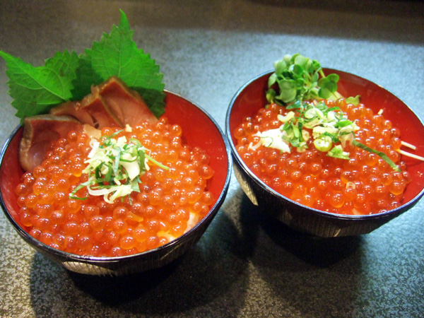 いくら丼 定食屋風と料亭風(あわせて1700円)