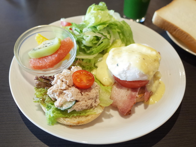 エッグベネディクトは2個ではなく、片方が自家製のツナサラダという組み合わせ。