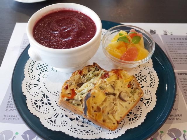ケークサレ&スープセット(1200円)のケークサレとミニフルーツ