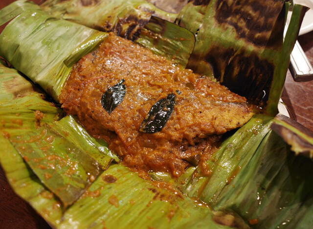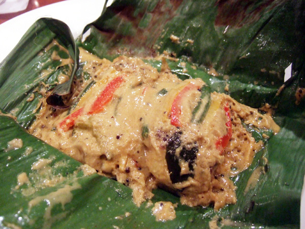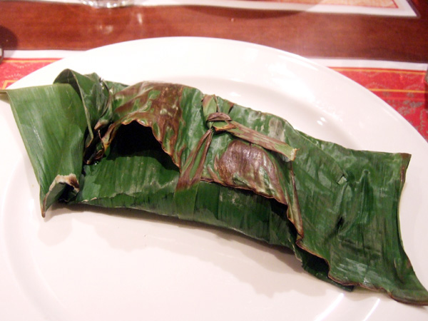 2013春を味わうコース(4000円)のお魚料理:桜鯛 バナナの葉包み焼き