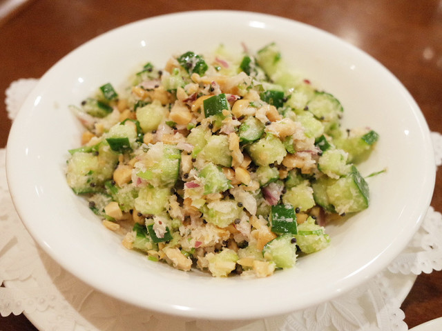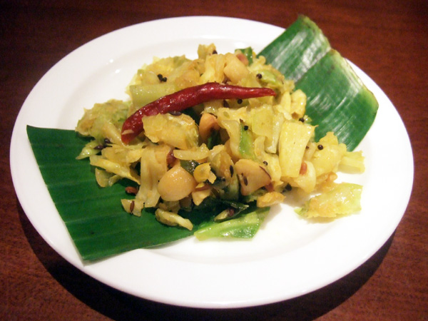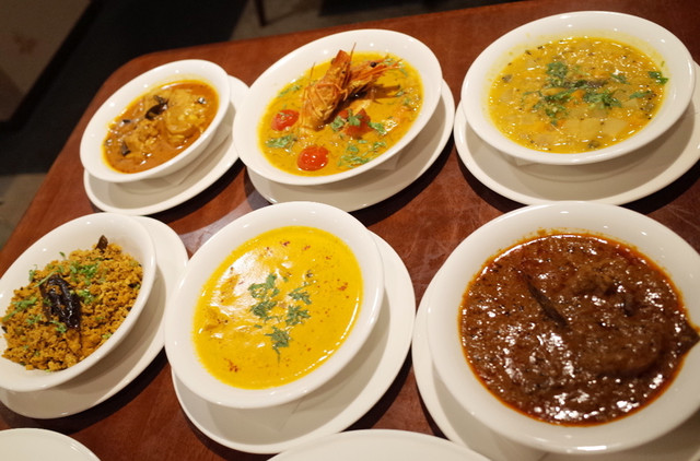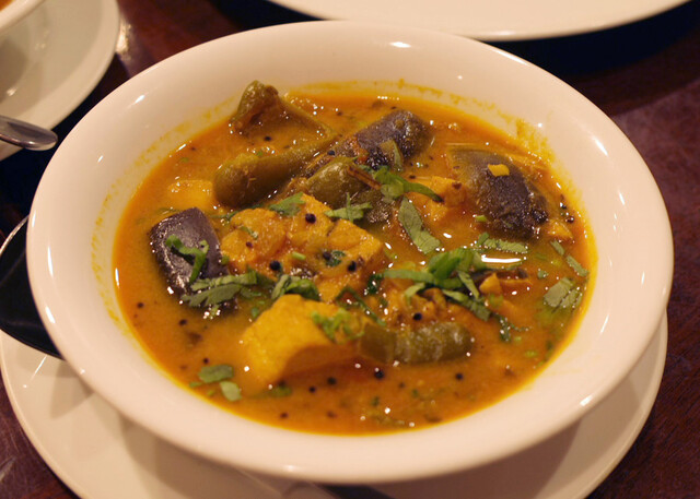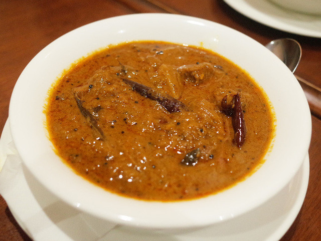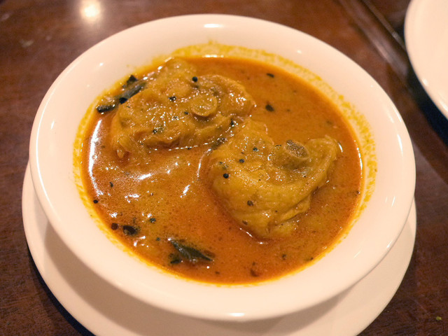 2014年のクリスマスディナー(4800円)のサンバー、きのこチャトニ、ココナッツチャトニ、レンコンのポリヤル