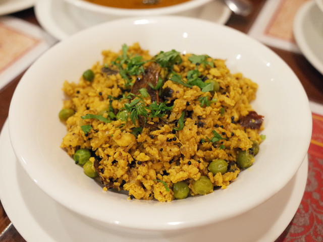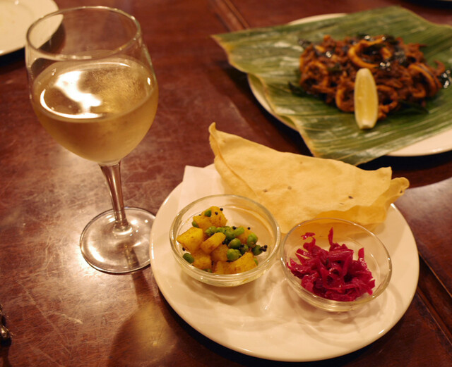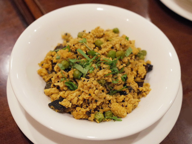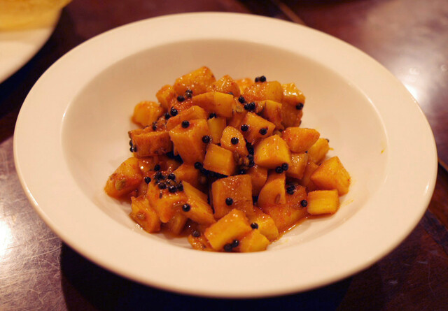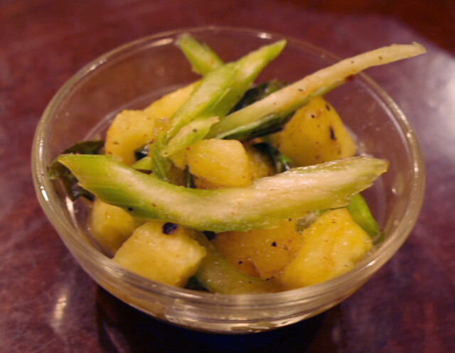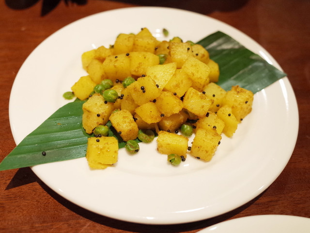 ディナーコース(2500円)のジャガイモとグリーンピースの炒め物