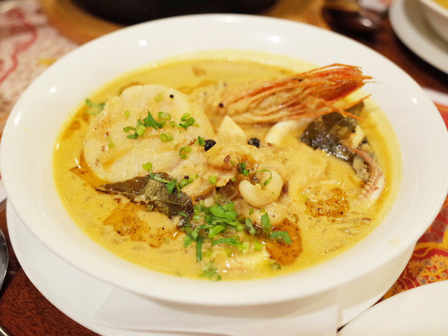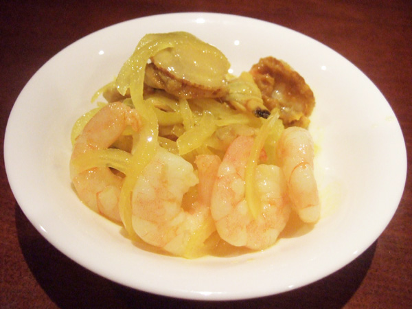 2014年のクリスマスディナー(4800円)の大帆立とエビをさっと煮込んで、酸味のカリー(2人前)