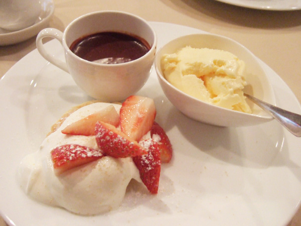 プレクリスマスコース(8500円・外税)のAOCブレス産バターを使ったヴァニラ風味のパウンドケーキ、ヴァローナのマンジャリのパヴェ・ド・ショコラ、イチゴのアイスクリーム