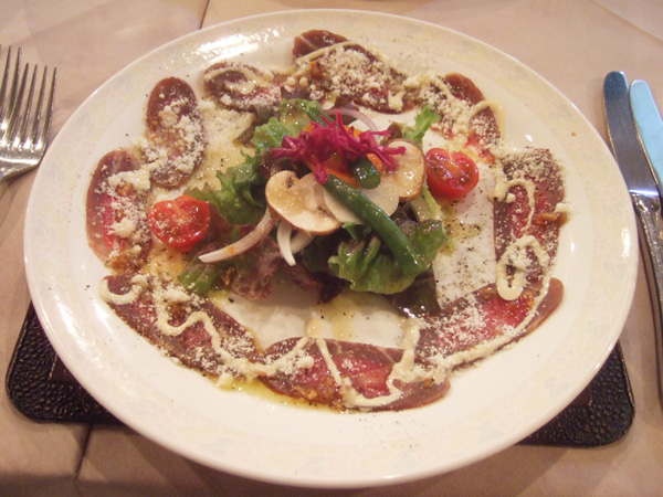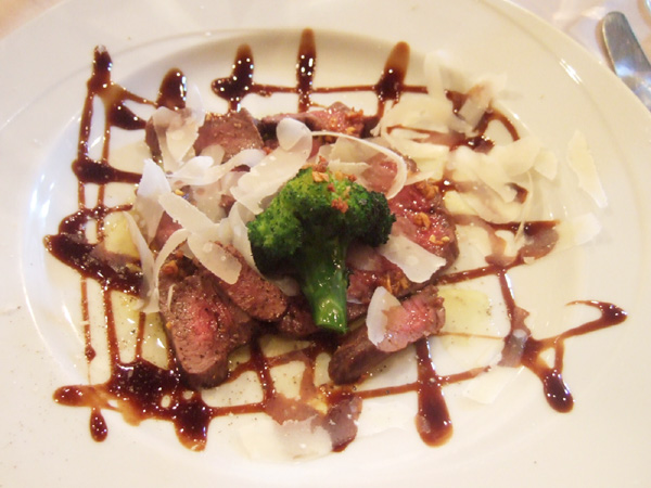 サンク・オ・ピエ ジビエ尽くしのコース2014(6800円)のエゾ鹿のタリアータ仕立て、バルサミコとパルミジャーの風味