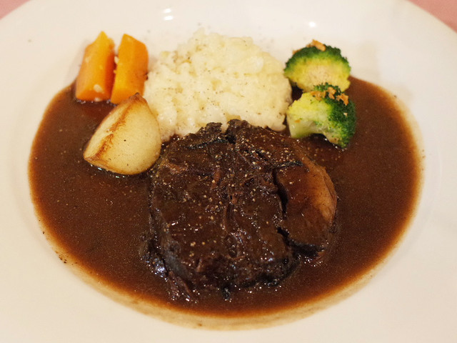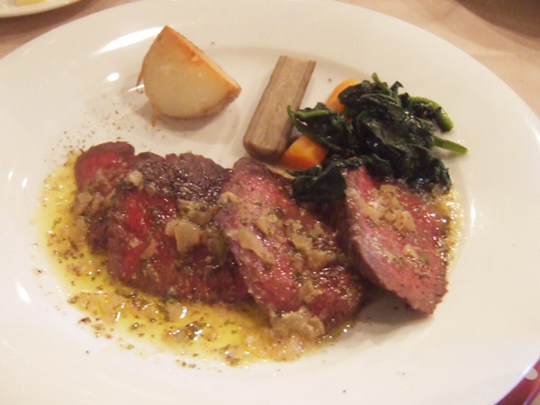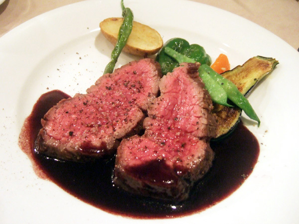 Menu B(4000円・外税)の主菜 オーストラリア産牛ヒレ肉120gのステーキ メートル・ドテル風