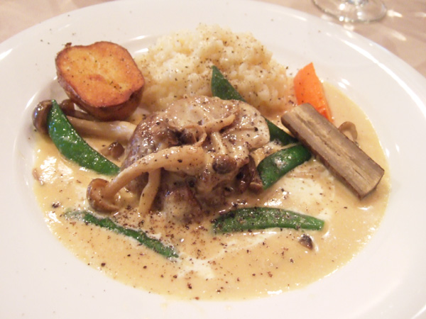 サンク・オ・ピエ4月5月のコース2014(5400円・外税)の山形産ジャージー種仔牛のクラシックなブランケット(クリームソース煮込み) パルミジャーノチーズ風味のリゾット添え