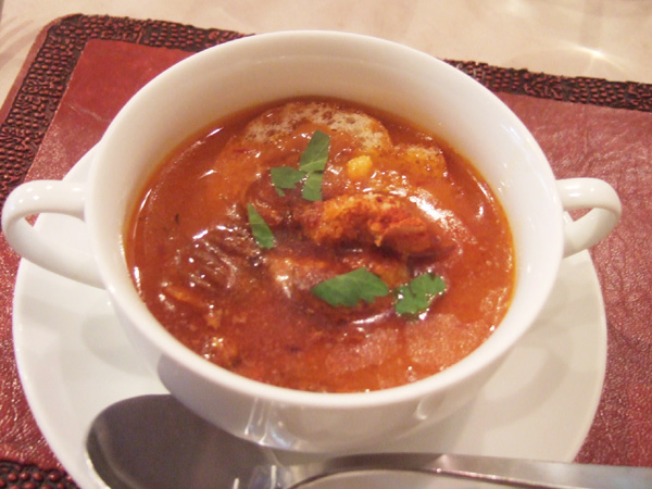 サンク・オ・ピエ4月5月のコース2014(5400円・外税)の南仏風魚のスープ(ブイヤベース風) ホタルイカ入り