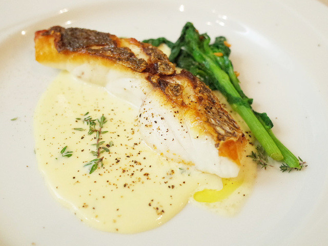 Menu B(4000円・外税)の主菜 イサキと帆立のポワレ アンチョビレモン風味(本日の魚料理)