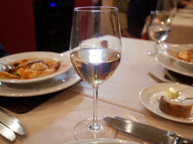 かんぱいー。私はアルザス・ゲヴェルツトラミネール(743円・外税)