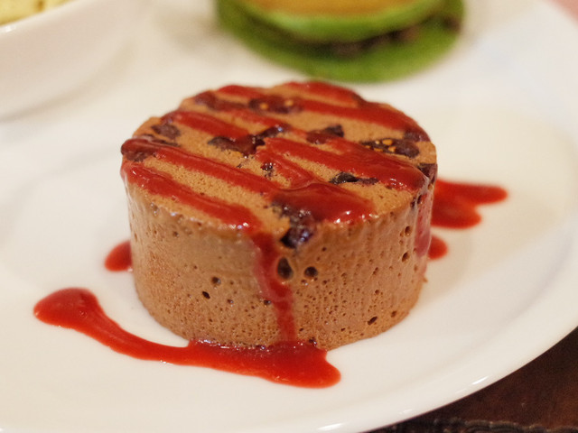 ・ヴァローナ社のショコラ・マンジャリのムース クランベリー風味 フランボワーズのクーリ添え