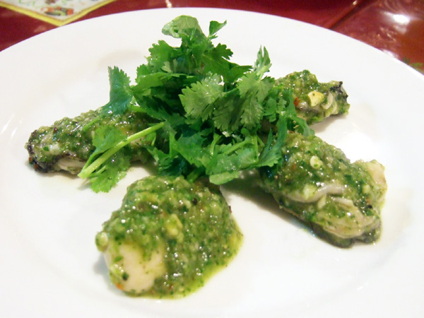 牡蠣の冷製 パクチーソースのマリネ