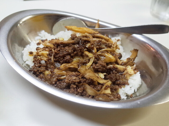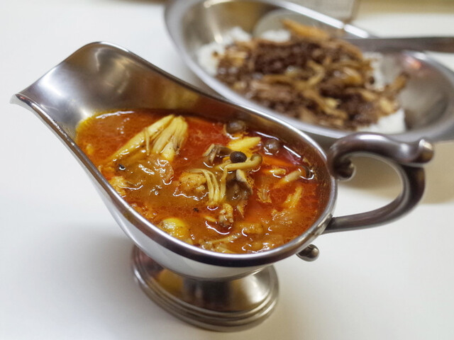 11月の秋の夜かれープレミアム きのこの叫び(1400円) ※秋の夜かれー+スパイシー挽肉+チーズ+きのこ炒め