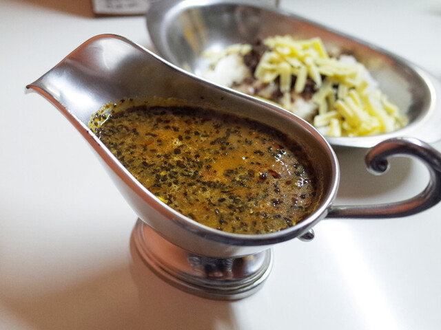 12月の冬の夜かれープレミアム(1600円) ※冬の夜かれーバジルタイプ+スパイシー挽肉+チーズ+牡蠣炒め