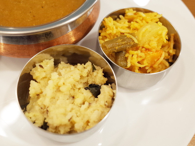 平日はカレー4種盛という感じですが、この日はシルモノ、おかず、揚げ物と定食っぽい感じでした。