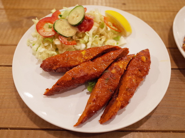 ムルグシークカバブとオニオンワダ。オニオンワダにはサンバルがつかなくなってしまったらしい。