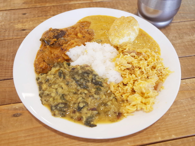 ランチビュッフェ(1000円) この日はマトンビリヤニ、オクラカレー、エッグカレー、野菜と豆のカレー