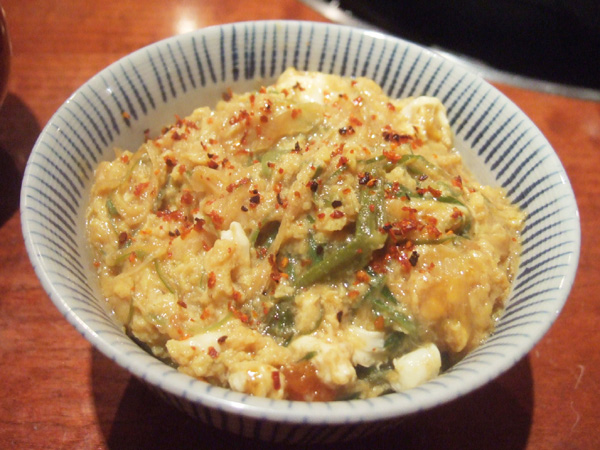 お鍋の出汁でつくった玉子とネギのどんぶり