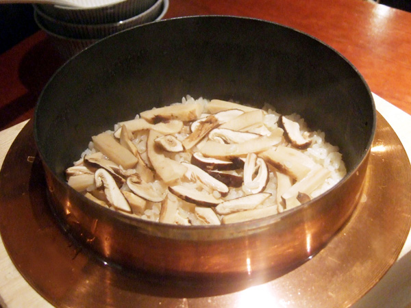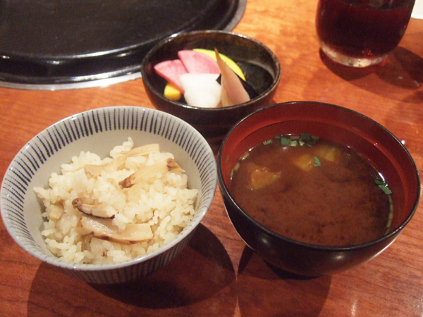 松茸ごはん、赤だし、お新香