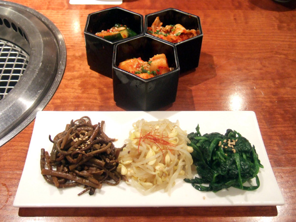 オイキムチ、カクテキ、あっさりキムチ、ナムル三種