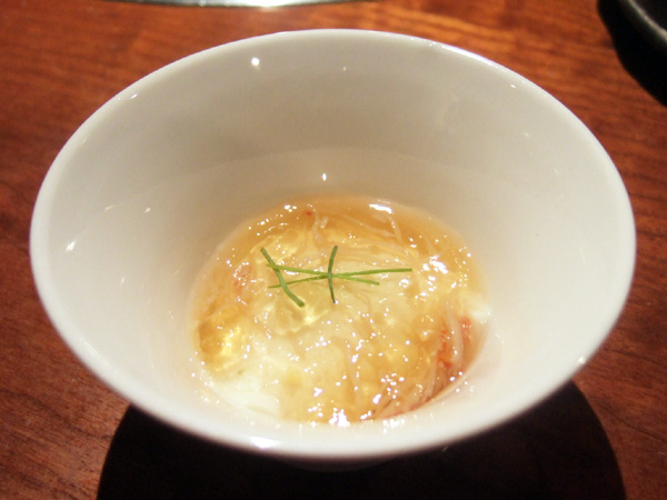 突き出しのズワイガニと生豆腐の生姜ジュレ