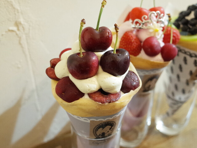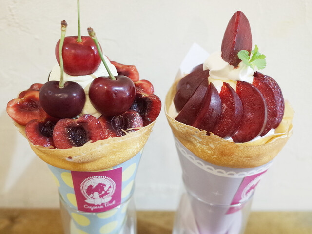 アメリカンチェリーとピスタチオクリーム&バラジャム香るクレープとプラム&バニラ