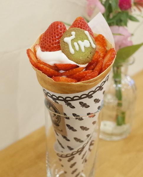 山盛りあまおうのチロルクレープ(850円) 豆乳クリームで作ってもらいました。※2017年3月の限定クレープ
