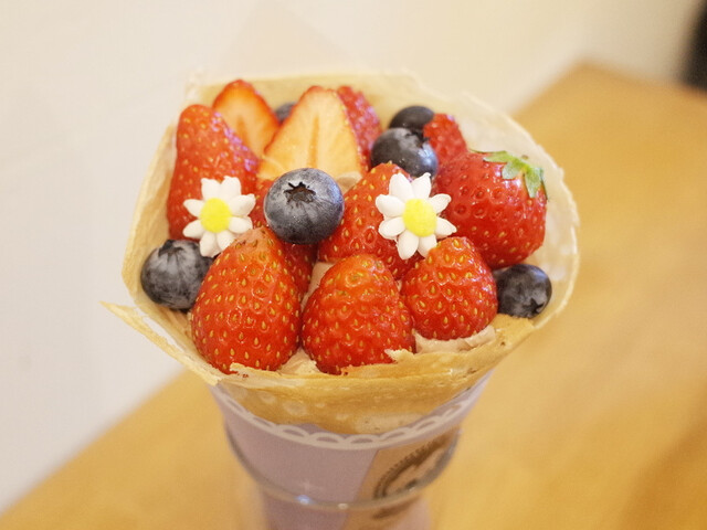 ドバイ産の大きなブルーベリーがたっぷりのクレープが圧巻!!