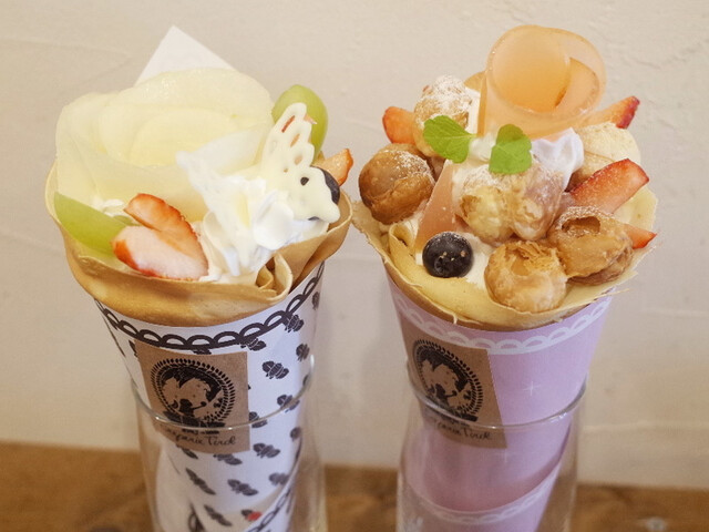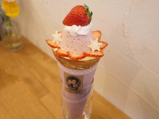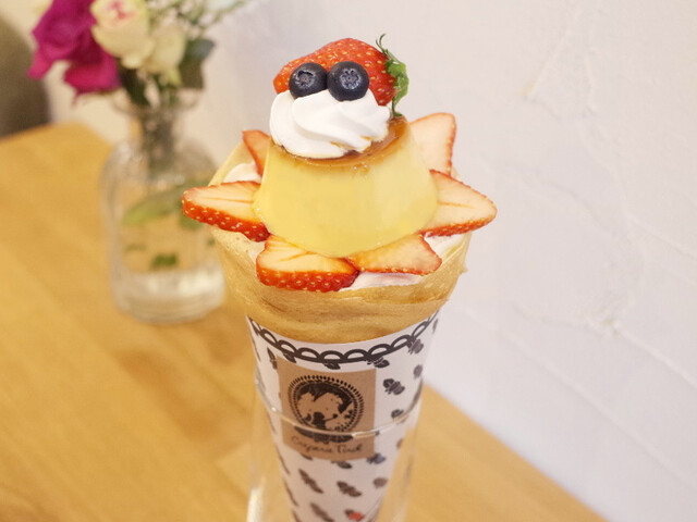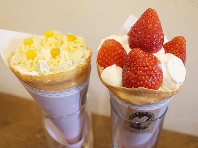 ポットマム(1000円)と栃木県産とちおとめ イチゴショートケーキクレープ(1200円)
