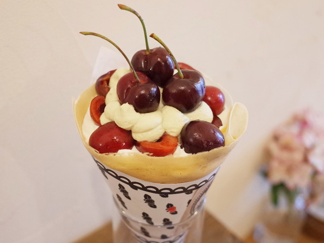アメリカンチェリーとピスタチオクリーム、薔薇ジャム香るクレープ(950円)