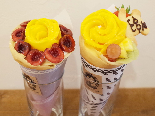 父の日クレープのマンゴーローズと♥アメリカンチェリー(950円)とマンゴーローズのカラフルフルーツブーケクレープwithくまのパパクッキー(950円)