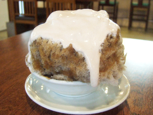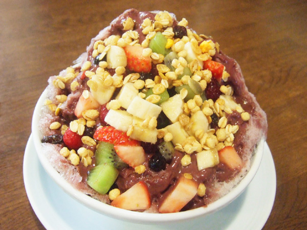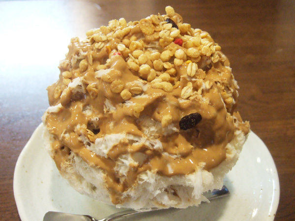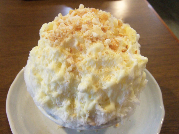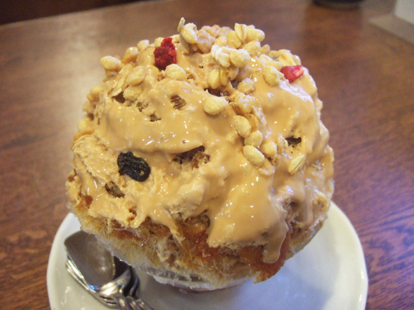 氷をスポンジケーキに見立てているのか、間にはマカダミアナッツとクリームがたっぷり!