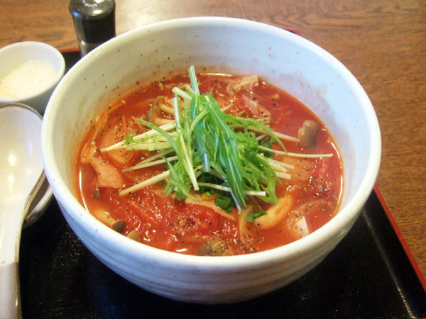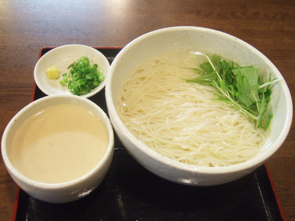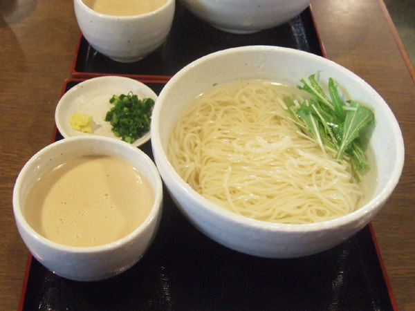 ざるうどんはノーマルな麺つゆ、ごま豆乳、トマトの3種類でお願いしました。ごま豆乳がダントツ好み!