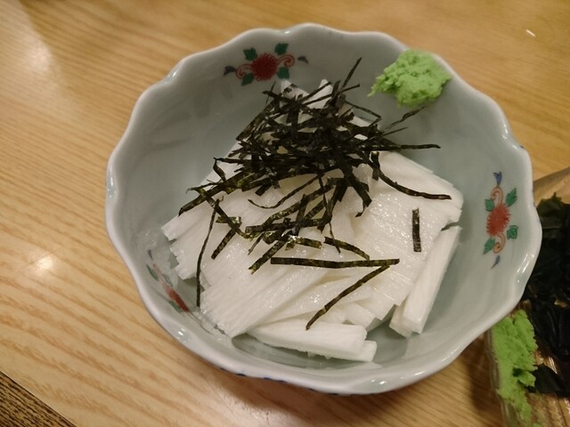 往年の女将さんは、最近はあまり出ていないようで中国の女性二人がお運びをやってくれています。それから、お酒は、燗、常温、冷酒の三種類で、注文時に聞かれますから、「冷やで」というと、常温か冷酒かと聞きかえされますのでご注意を。まあ、個人的には冷やでと言ったら常温なのですけど、店のパターンを覚えておきましょう。