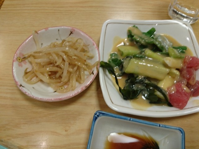 いつものもやしのお浸しを摘まみながら、まず冷えたところの千福で喉を潤します。テンポよく鯛の昆布締めがまいりますので、こちらを肴にコップを半分ほど空けますと、今度はぬたがまいります。