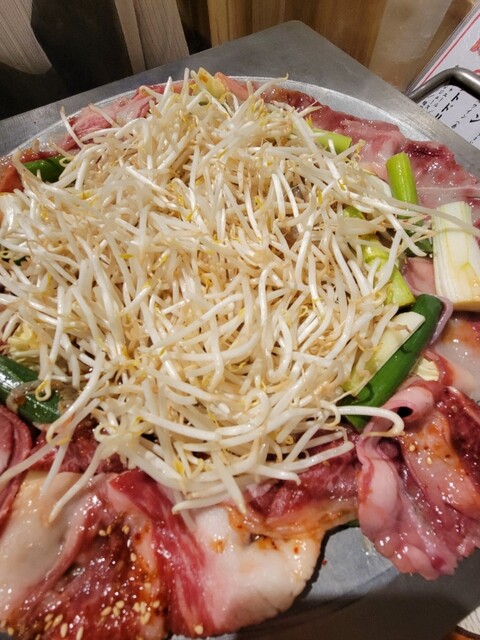お皿一杯に乗せられたお肉を、目の前で店員さんがバーナーで軽く焼いてくれます。