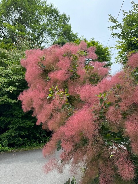 やがてハグマノキ(スモークツリー)の赤い色が目印になっているように駐車場がある。