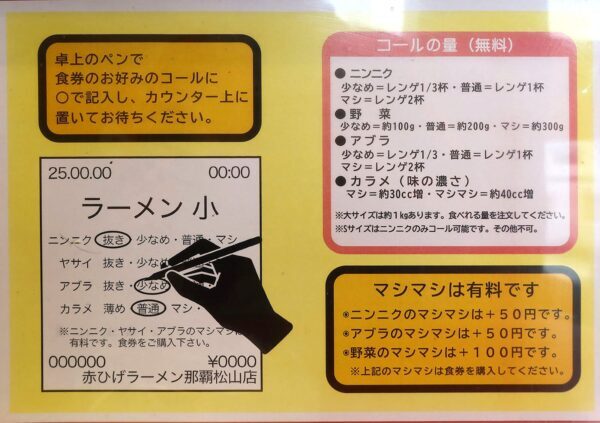 ラーメン小の場合はニンニクマシじゃなくて普通でいいですね。もしくはアブラも増して中和するとか…