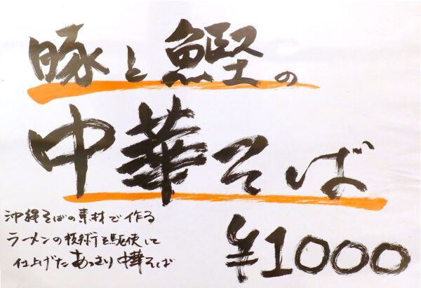 豚と鰹、沖縄そばの素材で作ったラーメン、ということです。