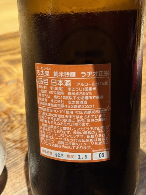 ・志太泉 純米吟醸生もと 「ラヂオ正宗」 山田錦100% 精米歩合55% 静岡酵母HD−1 志太泉酒造(静岡県)