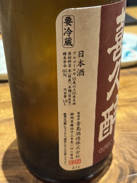 ・喜久酔 特別純米 山田錦60% 静岡酵母 青島酒造(静岡県) 1,800ml ¥3,300