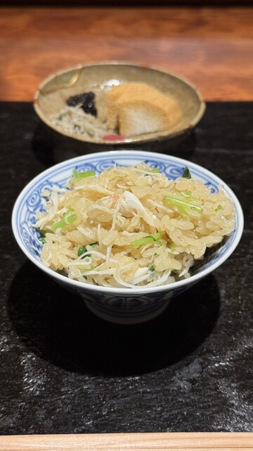 ・土鍋ご飯の前に口直しの煮麺は初めて。
