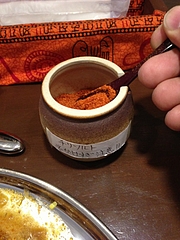 手前が味直し??3種のスパイス。(辛くないけど味がある!)