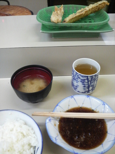天ぷら定食 揚げたての天ぷらがひとつずつ出てくるよ