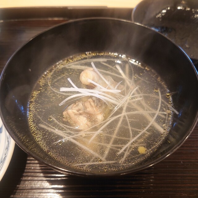 お椀:ホウボウとふきのお椀、優しいお味で美味しかったです。