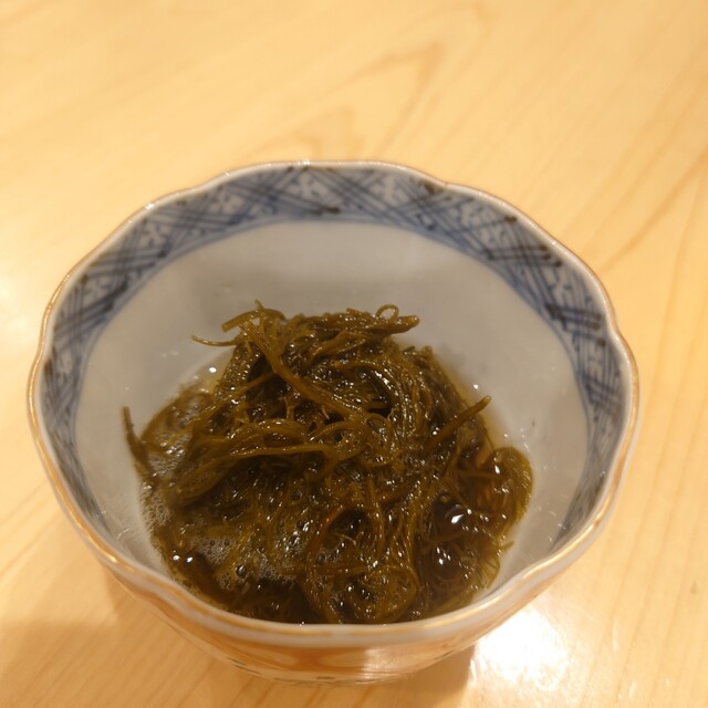 お通しのもずくもシャキシャキの岩もずくにお酢のお味もとても良くて大好きなんですよね〜