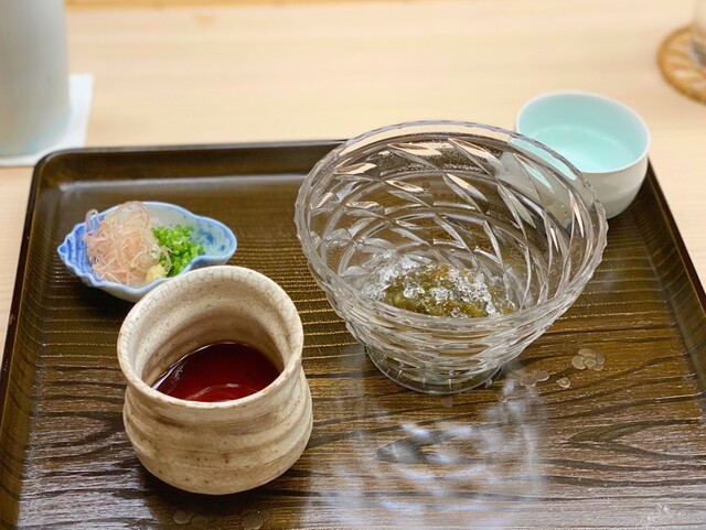 ⑤お造り アオリイカと鯒 ちり酢でいただきます
