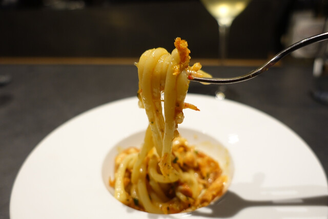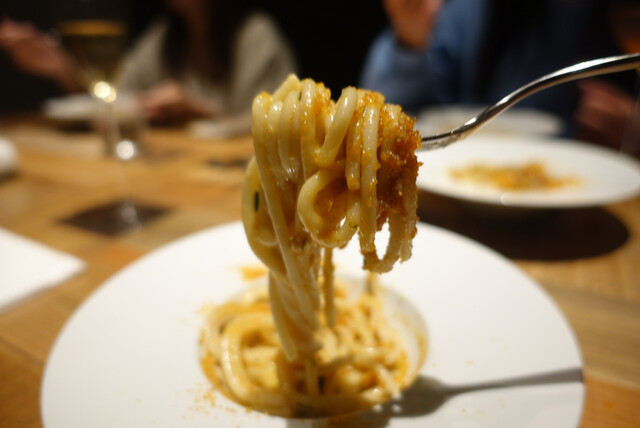 プリフィクスメニューのおすすめをよく聞かれるんですが結構悩む、だって全部美味しいんだもん。この日は初めてオンメニューされてた明太子パスタ、これも例に漏れず美味しかった。多分目を瞑って注文しても外れないよ