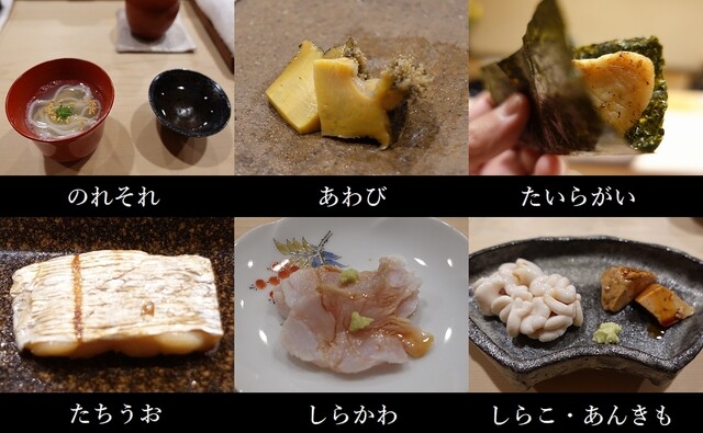 天草の小肌、天草の車海老、鱚、細魚、赤貝