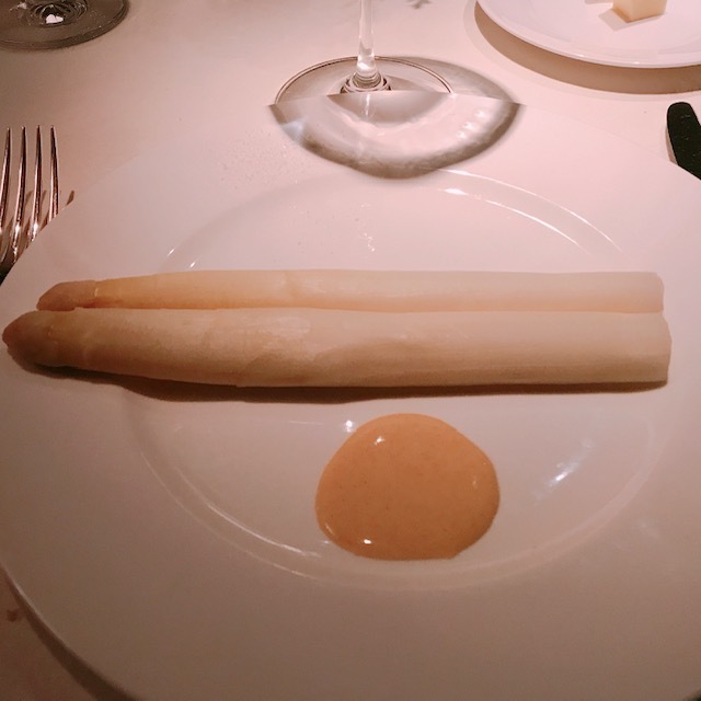 温製アントレ:茹で上げ白アスパラガス ドレッシングソース